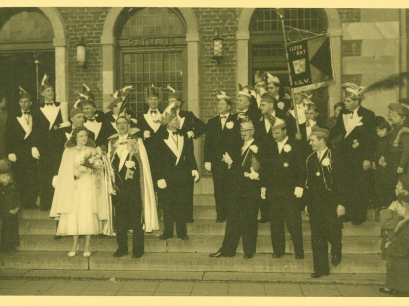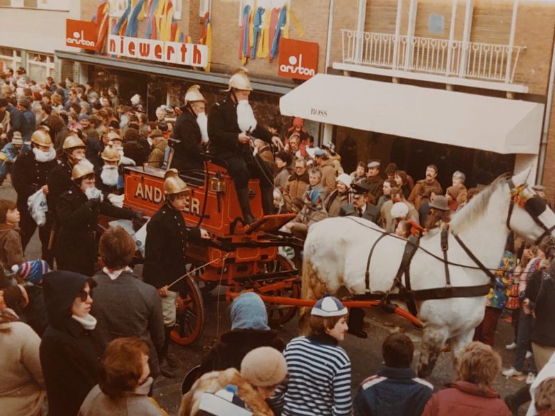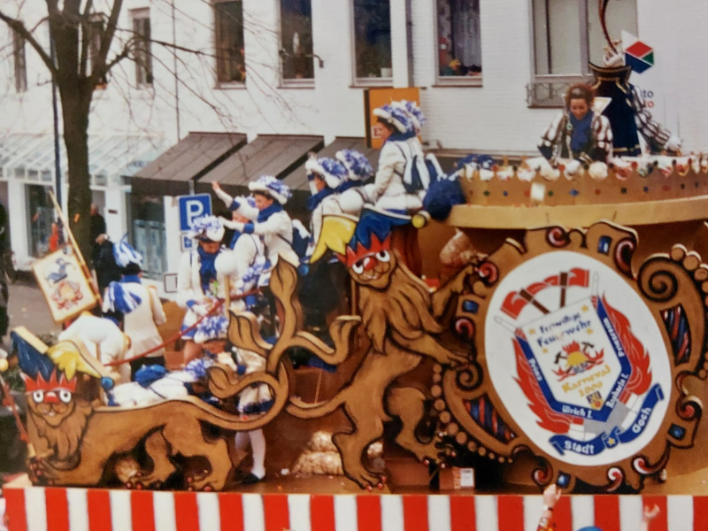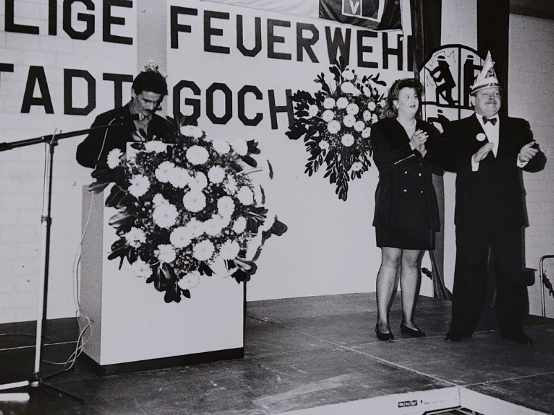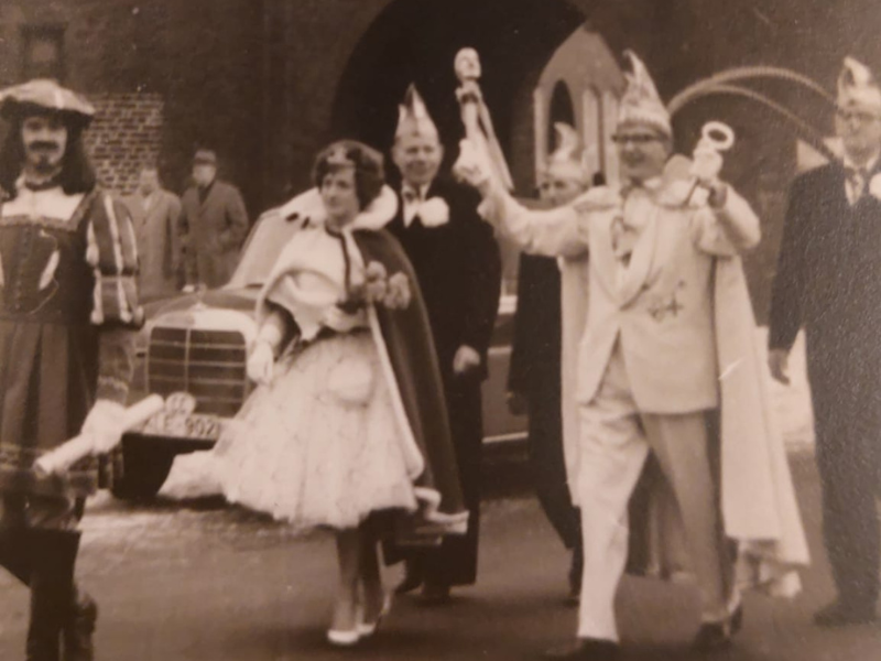 Der Karneval in Goch lebt wieder auf und die Freiwillige Feuerwehr stellt zum ersten Mal das Gocher Prinzenpaar mit Prinz Heinz I. (Heix) und Prinzessin Henny I. (Gerats). Mit ihrer Funkengarde und der „Besengarde“ der Feuerwehr brachten sie Spaß und Freude in die Gocher Säle und auf die Straßen.